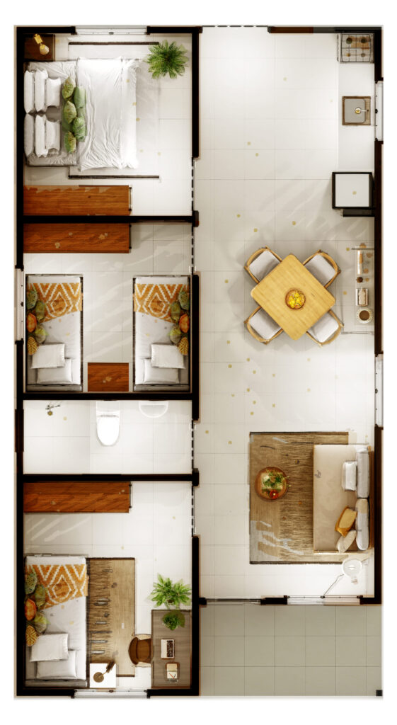 3 recámaras, 1 baño, Sala / comedor / cocina, 1 estacionamiento